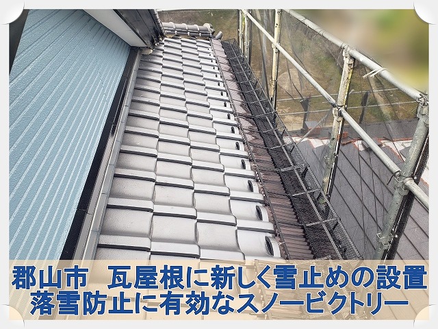 皆さんこんにちは。『街の屋根やさんいわき店』です。突然ですが、いわき市にお住まいの皆さん!屋根・外壁・雨樋に破損などは起きていませんか?最近いわき市では突風が発生することがよくあります。劣化が進んでいると強風により屋根などが外れて飛ばされてしまうことがよくあります。現在強風により破損した部分の ...続きを読む2025/09/27 郡山市にて雪止めがない瓦屋根に雪止め瓦とスノービクトリーを設置する屋根リフォーム