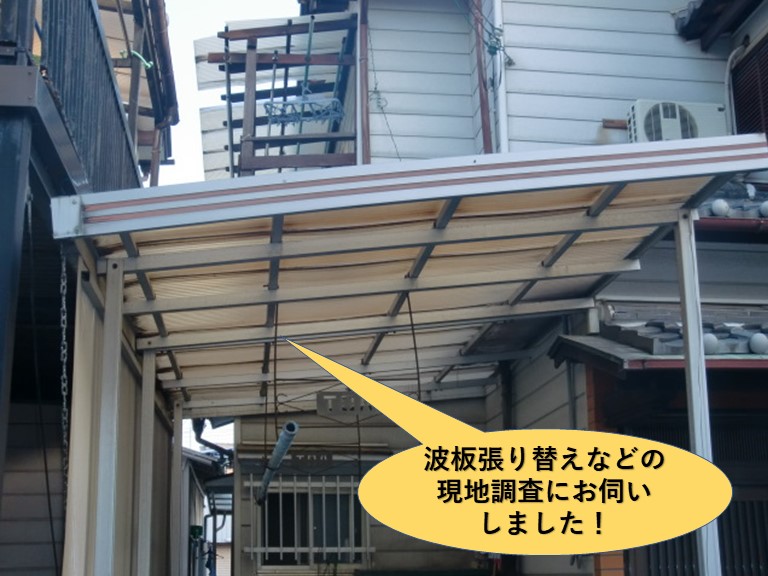 岸和田市にお住いのN様より「二階の波板と、カーポートの波板を張り替えたいので、見積してもらえますか?」とご相談があり、現地調査にお伺いしました。カーポートはアルミ製で、二階のテラス屋根は木製で、それぞれ波板が変色し古くなってきていました。 ...続きを読む