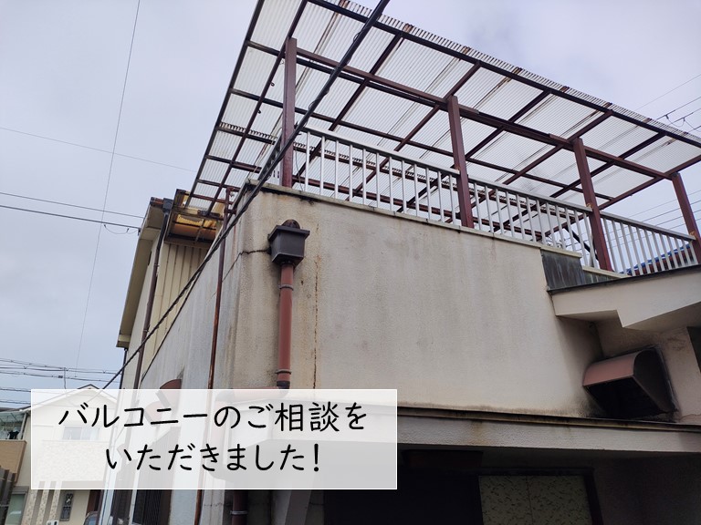 泉大津市で行った波板屋根の現地調査の様子をご紹介します。K様邸は2階建ての鉄骨造で、バルコニーに大きな波板屋根が設置されています。その波板が割れて飛ばされ、下のお部屋で雨漏りしている状況です。今回のご相談は内装改修(全面リフォーム)も含まれていて、バルコニーにお部屋を一間増築することもご検討されていました。「 ...続きを読む2025/09/26 岸和田市の屋根葺き替え/ケイミューのコロニアルグラッサに葺き替え