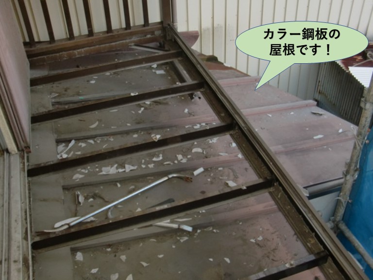 泉北郡忠岡町で「玄関の中の天井に雨漏りが発生した」というご相談で、現地調査にお伺いしました。雨漏りしている天井は、玄関ドア側に近いところで、玄関庇を確認すると金属屋根で錆が広がり劣化が進んでいました。Y様邸は、玄関の前に鉄骨のガレージがあり、その上が物干し場になっています。そこで洗濯物を干すとき ...続きを読む2025/09/26 岸和田市の屋根葺き替えでカラー鋼板からガルバリウム鋼板に葺き替え
