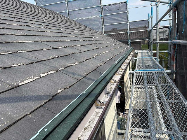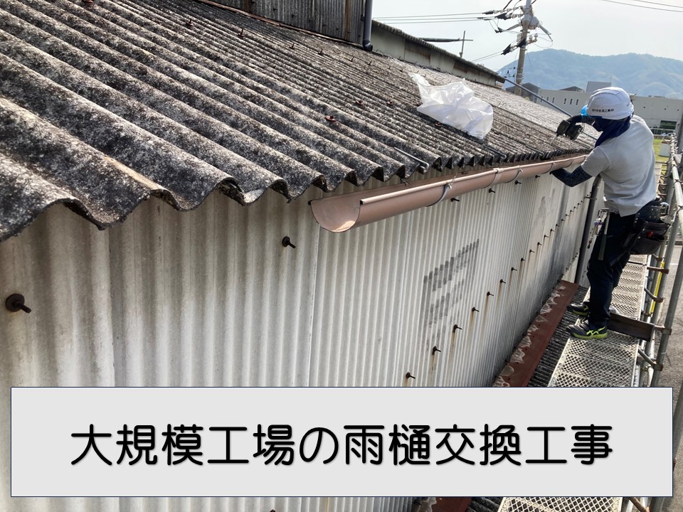 スレート屋根(パミール)のメンテナンスを依頼されたものの、劣化がひどく塗装で対応できなかったため、軽量金属屋根材のスーパーガルテクトでカバー工事を提案しました。パミールの問題は以下の記事で紹介しています。>>名古屋市名東区|劣化したスレート屋根!パミールの問題とカバー工事のメリット・デメリットを紹 ...続きを読む2025/09/25 呉市、大規模工場で雨樋交換工事|エスロンV200で雨樋の詰まり・変形を解決!