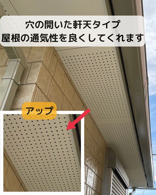 岸和田市にお住いの皆さまこんにちは!皆さまの中に屋根や外壁の塗装をご検討されている方はおられますか?お家を塗装すると新築のように美しくなりますが、それは「付帯部・ふたいぶ」も一緒に塗装しているからです。付帯部とは屋根や外壁以外の部分のことで、雨樋や雨戸、軒天、破風板、鼻隠し、配管カバーなどがあります。【関連記 ...続きを読む2025/09/25 神戸市西区で穴が開いている軒天(有孔板)と玄関軒天を塗装!軒天目地にシーリングも打設して防水性もばっちり!