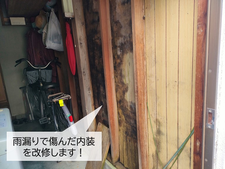 岸和田市で行った雨漏りで傷んだ増築部の内装改修工事の様子をご紹介します。T様は現在遠方にお住いされていて、ご実家には長期休暇を利用して帰省されていたそうです。今年のお正月に帰省すると、増築部に雨漏りしていることが分かり、街の屋根やさん岸和田店にご相談をいただきました。雨漏りの原因の可能性があった雨樋の詰まりと ...続きを読む2025/09/25 貝塚市のガレージの壁のトタン波板をガルバリウム鋼板に張替