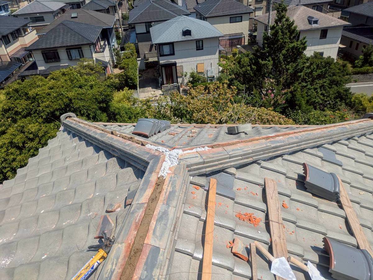 貝塚市の皆さまこんにちは!皆さまのお家にはバルコニーやベランダが設置されていますか?バルコニーやベランダは外部に設置されていますので、雨水から守るために必ず防水が施されています。防水の工法はいくつかありますが、今回の現場ブログでは貝塚市I様邸の事例を参考に「シート防水」についてご紹介したいと思います。【防水工 ...続きを読む2025/09/24 土浦市でズレや割れのあった瓦屋根の修理!既存の棟瓦を解体し、下地も調整