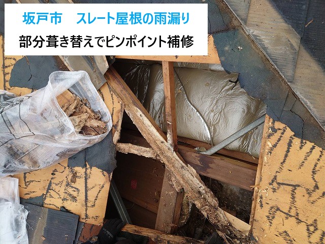 泉大津市で行ったベランダ防水工事の中の「躯体補修・くたいほしゅう」の様子をご紹介します。躯体補修とは建物に発生したひび割れ等の劣化箇所を補修する工事です。防水する前に防水面となる下地にひび割れや破損などが見つかった場合はまず躯体の補修をしないといけません。 ...続きを読む2025/09/24 坂戸市 スレート屋根の雨漏り修理!部分葺き替えでピンポイントにしっかり補修しました♪