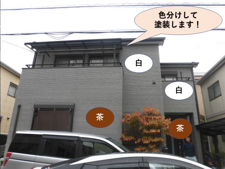 貝塚市の屋根・外壁塗装工事で今回は塗装前の高圧洗浄の様子をお伝えします。屋根・外壁などの塗装工事では高圧洗浄を必ず行います。高圧洗浄は文字の通り強い水圧により、長い年月の間に蓄積された汚れを落とす作業でもあり、古くなった塗膜も洗い落とす作業でもあります。高圧洗浄をしないで塗装すると、汚れや古くな ...続きを読む2025/09/24 貝塚市のサイディングの外壁を色分け塗装し、シックでおしゃれな外観に!