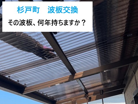岸和田市にお住いの皆さまこんにちは!最近雨が多いですね・・・。これから一雨ごとに涼しくなっていくのかな、と思うと少しホッとします。さて今回の現場ブログでは、岸和田市S様邸で行った、『モルタル外壁の誘発目地(ゆうはつめじ)の防水』と下屋の『壁際水切り取付』の様子をご紹介します。いきなり「誘発目地」と言われてもよ ...続きを読む2025/09/24 杉戸町 その波板、あと何年持ちますか?塩ビ・ポリカ・トタンなど素材ごとの違いと失敗しない選び方を屋根業者が解説!