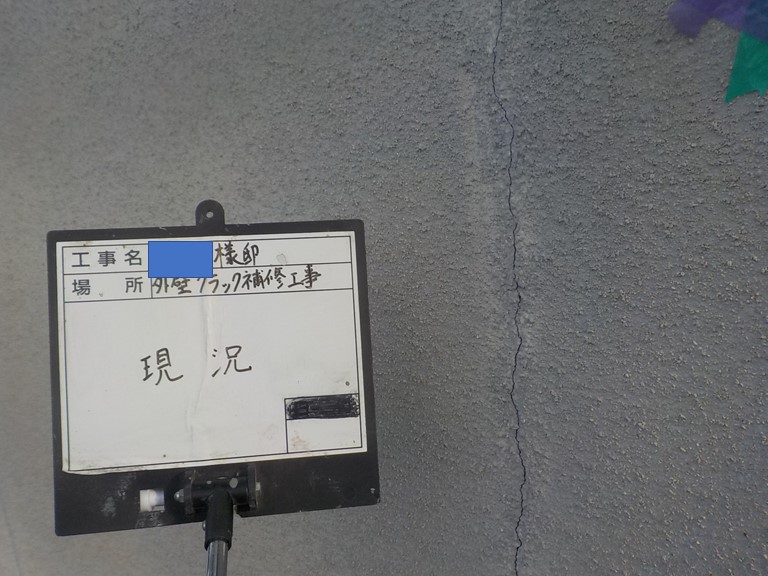 高石市で行った雨漏り調査の様子をご紹介します。M様邸は木造・2階建ての住宅で、屋根はスレート葺きです。スレートとは厚みが約5mmほどの平らな板状の屋根材のことです。台風で下り棟の板金が飛散していました。棟とは屋根の頂点の水平部分のことで、軒先に向かって下りる棟のことを下り棟と言います。 ...続きを読む2025/09/24 泉南市の外壁塗装前のクラック補修でUカットして補修しました