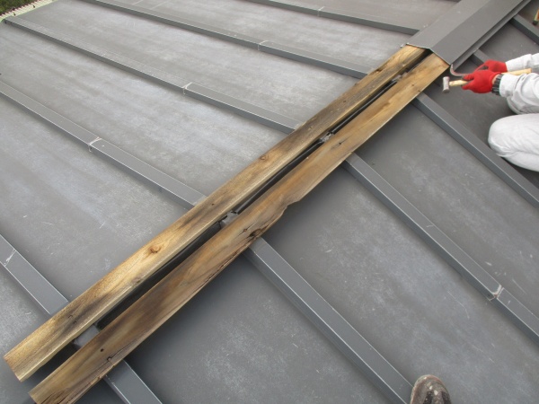 葛城市で何かに当たり破損した青い釉薬瓦をスーパーガルテクトへ葺き替え工事を行うことになりました。長年瓦と葺き土をのせていたバラ板の立て直し作業を続行いたします。前回は瓦の解体作業と不陸調整を行いました。補強垂木の上から野地板の増し張りと防水シートの設置作業を行います。頑丈な下地が復活いたします。自然災害は思い ...続きを読む2021/05/25 宇都宮市で風による飛んだ棟板金の修復工事をしました。