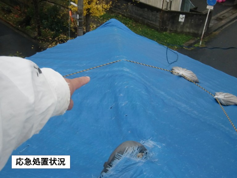 熊取町にお住いのO様より「台風で屋根に被害が遭ったので他の業者に依頼して応急処置してもらったんですが、工事がなかなか進まないので一度修理の見積もりをもらえませんか?」とのご相談をいただき現地調査にお伺いしました。O様邸は木造2階建て、土葺きの瓦屋根です。火災保険にはご加入されておらず、修理費用のすべてをご負担 ...続きを読む2025/09/24 泉大津市で台風で瓦がめくれ上がり割れている箇所もありました!