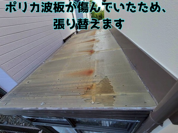 蒲郡市の皆さんこんにちは!街の屋根やさん豊橋店です。蒲郡市のお客様から「外壁サイディングの継ぎ目にひび割れがあるので、一度見てほしい」とご相談をいただきました。外壁は築15年ほどで、全体的に色褪せや汚れも見られる状態でした。何か不具合を感じたらまずは無料調査をご利用くださいね♪【CLICK ...続きを読む2025/09/22 多治見市東町でポリカ波板張り替え工事!専用ビスで耐久性もしっかり