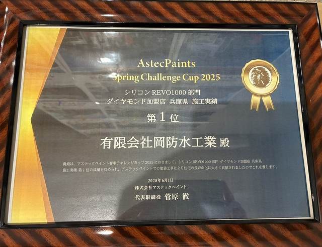 「屋根の色褪せが気になる」「苔が生えているけど、大丈夫かな…」 大切なお住まいを守る屋根は、常に紫外線や雨風にさらされています。特に多くの住宅で採用されているスレート屋根は、定期的なメンテナンスが欠かせません。見た目の変化に気づいたら、それは屋根からのSOSかもしれません。 今回は、大野城市にお ...続きを読む2025/09/23 神戸市垂水区・街の屋根やさん明石・神戸店が快挙!アステックペイント施工実績コンペで兵庫県No.1の塗装店に選ばれました