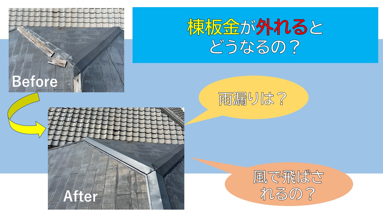皆さんお疲れ様です。街の屋根やさんつくば稲敷店です。 前回のブログでは、土浦市の倉庫建物にて実施している屋根鉄骨塗装工事の中塗りの様子をお伝えいたしました。 今回は、中塗りに続いて行った、高性能塗料「クリーンマイルドシリコン」による上塗り工程について、その施工の様子をご紹介したいと思います。 ...続きを読む2025/09/24 泉大津市の棟板金が外れて雨漏り発生!棟板金についてご紹介!