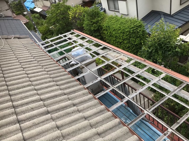桜井市のモニエル瓦屋根のお客様から、雨漏りしてるみたいなので点検してほしいとご連絡をいただき、無料点検をさせていただきました。前回のブログでは、無料点検の様子をご紹介いたしました。今回のブログでは、雨漏りしているモニエル瓦の棟瓦取り直し工事の様子をお届けします。モニエル瓦屋根のブログは数少ないので、モニエル瓦 ...続きを読む2021/05/25 桜井市で剥がれた波板屋根の垂木を補強し、ポリカ波板を設置しました