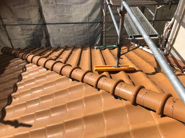 奈良市で瓦屋根の葺き替え工事を施工しました。築39年で経年劣化していおり無料見積もりからガルテクトへ葺き替え工事となりました。当社ではオンライン無料相談や無料見積もりを行っています。お気軽に相談できるコンテンツがあるため、ほとんどのお客様が無料相談や見積もりからとなっております。前回は防水紙の設置をご紹介しま ...続きを読む2021/05/25 市貝町でタスペーサーを取り付け屋根の上塗り刷毛塗装をしました