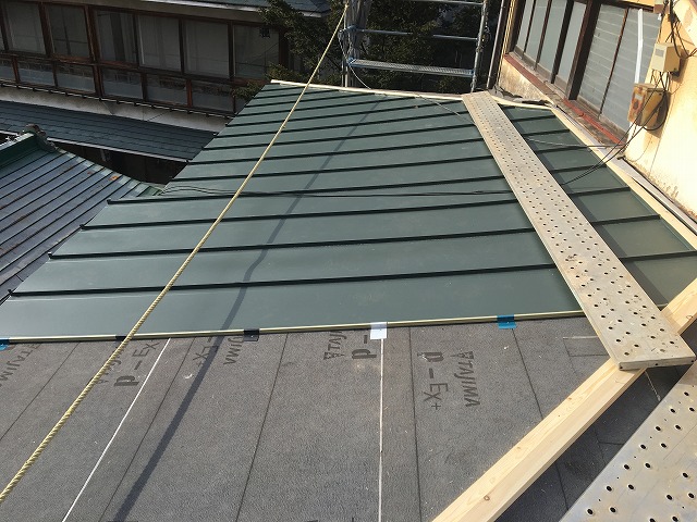 2021/05/24  新しい板金屋根の取り付けで、葺き替え工事も後半に|渋川伊香保