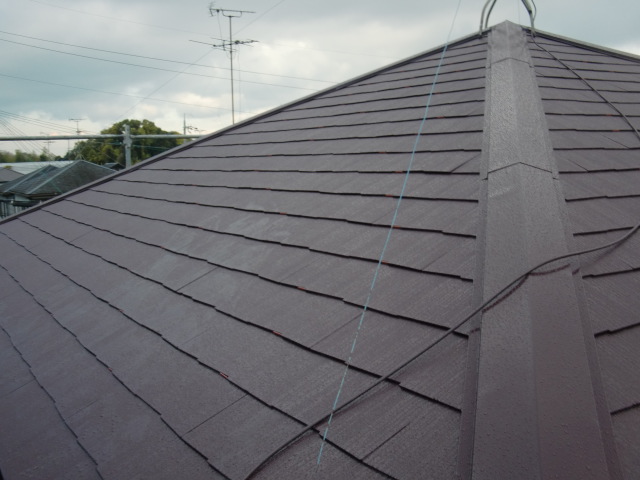 阪南市のU様より「以前からなんですが、一階の和室の天井から雨漏りしてるんです。先日の台風でひどくなったので、見に来てもらえますか?」とご相談があり、雨漏り調査にお伺いしました。雨漏りは必ず屋根から発生するわけではなく、壁やサッシ回りなどからも雨が浸入することがあります。今回のように、一階での雨漏 ...続きを読む2025/09/22 泉佐野市俵屋で屋根塗装の中塗り工程に入りました!