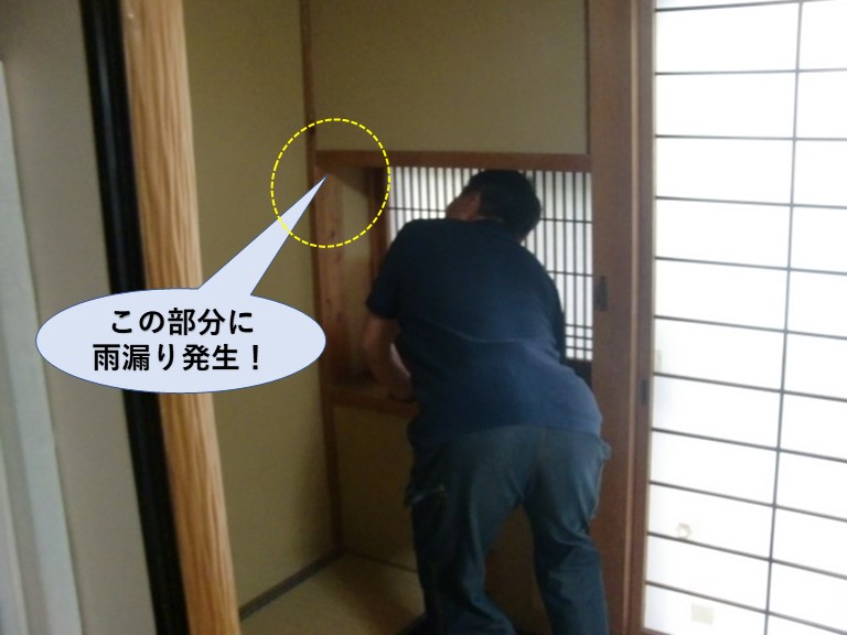 岸和田市極楽寺町で一階の和室にある床の間横の出窓枠に雨漏りが発生したということで現地調査にお伺いしました。写真右は雨漏り箇所を確認している様子です。右は、出窓の枠に雨が浸入した跡です。雨漏 ...続きを読む2025/09/22 岸和田市の銅板の屋根から雨漏りが発生し棟を修理しました!