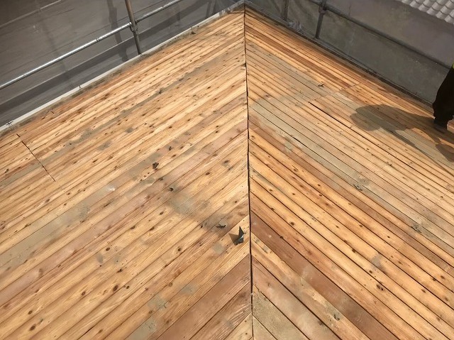 橿原市で葺き替え工事をしています。前回は、垂木で補強・不陸調整をした土台の上に新しい構造用合板の野地板を張りました。全体的に張り終えたので、今回は防水紙を張る作業に入ります。大事な下地作業の仕上げになるので、しっかりと張っていきます。その様子を紹介していきます! 防水紙を ...続きを読む2021/05/25 香芝市で葺き土の下から顔を見せた野地板は傷んでいる為垂木で補強