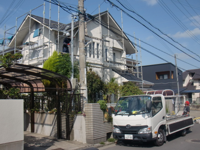 岸和田市岡山町のモルタル壁の外壁塗装と屋根塗装で、本日は高圧洗浄の様子をご紹介します。屋根に生えた苔や、外壁の汚れなどもきれいに落とします!写真は足場設置時の様子です。 足場設置後、メッシュシートを足場のまわりに張り、塗料の飛 ...続きを読む2025/09/19 熊取町のスレートの屋根塗装で遮熱効果があるサーモアイSiを使用