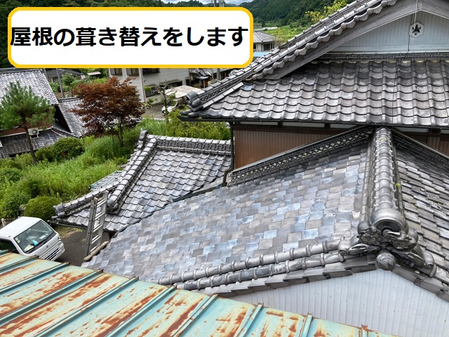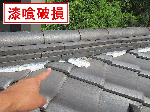 泉大津市の台風被害に遭った屋根の調査に伺いしました。Y様邸は木造の2階建てで屋根にはスレートを葺いています。スレートとは厚みが薄い平らな板状の屋根材のことで、棟(屋根の頂点の水平部)の仕舞で板金を取付けています。その板金が台風の強風で剥がれて飛んでしまった、とのご相談があり調査に伺いました。 ...続きを読む2025/09/17 各務原市|軽量化のため葺き替えたい!釉薬瓦屋根の状態を点検しました