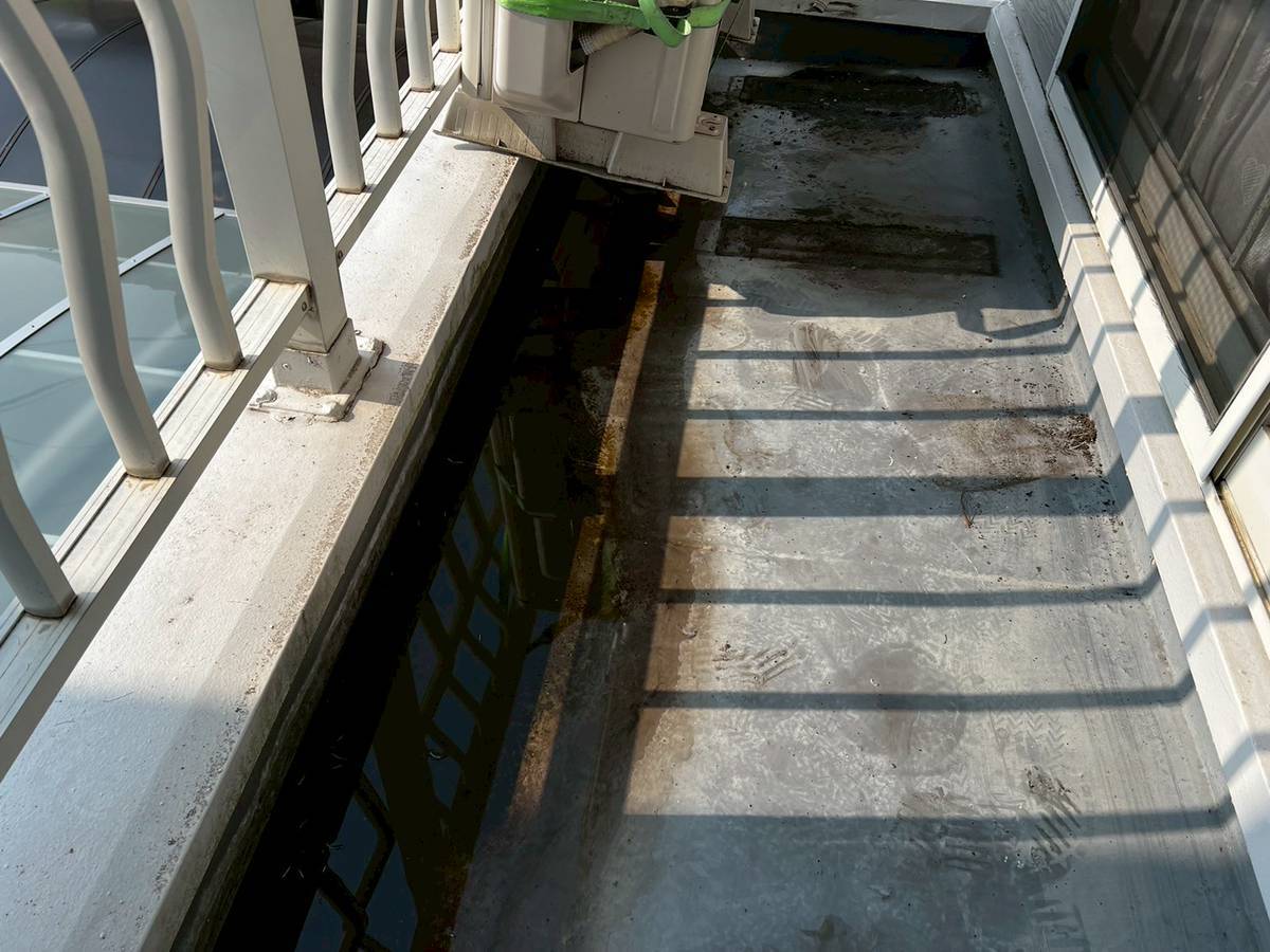 皆さんこんにちは。街の屋根やさん加古川店です。加古川市のお客様から「20年ほど外装の手入れをしていないので心配」とのご相談を受けて、破風塗装と基礎塗装を実施しました。放置すると雨だれ跡やひび割れからの劣化が進むため、早めの対策が肝心です。 入母屋の破風板の中塗りで塗膜を確 ...続きを読む2025/09/9 加古川市 防水工事 ベランダに雨だまりが雨漏りを招く前にリフォーム 防水工事