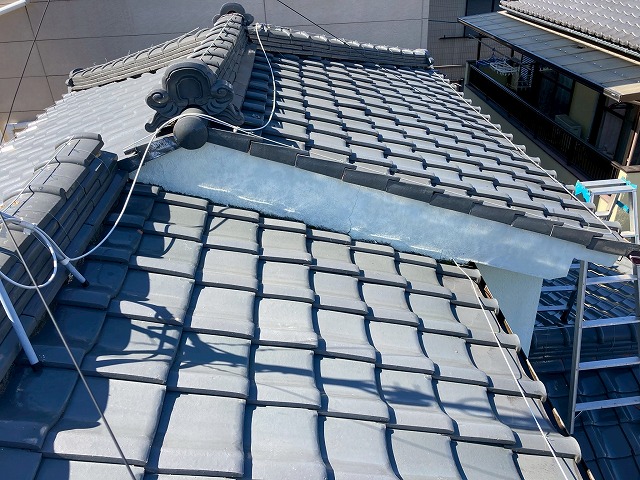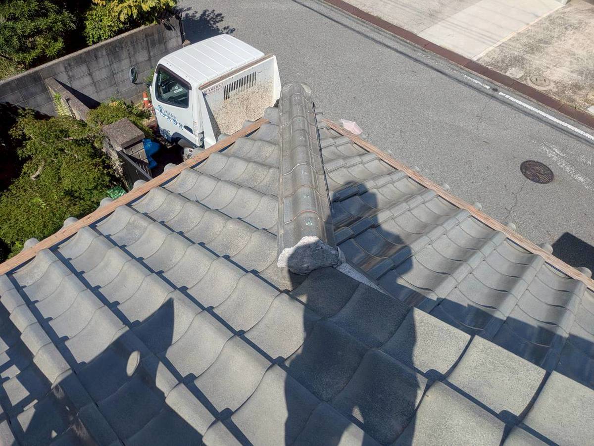 加古川市のお客様から「近ごろの強風や雨で瓦の様子が気になる」とのご相談をいただき、和瓦(釉薬瓦・ハイシルバー)を屋根診断士が丁寧に点検しました。大棟の通りや熨斗(のし)瓦の目地、漆喰(しっくい)の状態、壁際の取り合い、瓦の緊結状況まで確認しました。 隅棟の通り確認と端部漆 ...続きを読む2025/09/10 名古屋市天白区で漆喰がひび割れていた棟瓦の取り直し、モルロックによる土台の構築