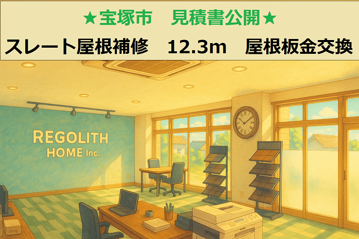 高崎市で瓦葺き直し工事の現地調査を行いました 高崎市皆さんこんにちはトータルリフォームのアシストサービスです今日は、高崎市にお住いのお客様より、屋根瓦の葺き直しの相談をいた ...続きを読む2025/09/9 宝塚市 見積書公開!長さ12.3m 屋根板金取り替え スレート屋根補修