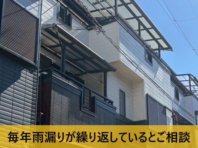 泉大津市の木造・2階建ての住宅の雨漏り調査にお伺いしました。「空き家の2階の和室の天井で雨漏りしてるので修理してもらえませんか?」とのご相談です。S様は現在遠方にお住いされていて、調査の当日お立合いいただくことができなかったので、雨漏りしているお部屋の中を確認することができませんでしたが「2階には部屋が一つし ...続きを読む2025/09/11 阪南市の雨漏り修理に伴うベランダの波板張替え工事