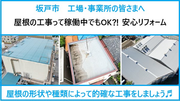 こんにちは!埼玉県川口市でリフォーム工事を行っております、街の屋根やさん川口店です🏠今回は埼玉県 熊谷市にて屋根カバー工事を行いましたので、その様子をご紹介いたします。 屋根は住まいを守るとても大切な部分ですが、日々の紫外線や風雨によって確実に劣化が進んでいきます。特に熊谷市 ...続きを読む2025/09/10 坂戸市 工場・事業所の皆さまへ!屋根の老朽化には「カバー工法」!工事中も稼働OKで安心リフォーム