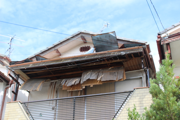 2021/05/21  岡山市北区で屋根が飛び、今後の台風でほかの屋根が飛ぶのが心配