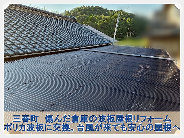 目次 【表示】 【非表示】 東彼杵郡での現場調査する物件情報 スレート(コロニアル)屋根の状態 スレートの塗装塗り替えの金額の出した方 ...続きを読む2025/09/2 三春町にて台風前に倉庫の傷んだ波板をポリカ波板に交換する屋根リフォームを実施
