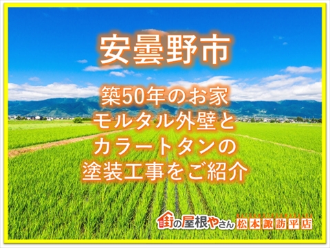 本日は三島市にて外壁タイルの撤去作業を行っています。タイルそのものには大きな問題は見られませんでしたが、下階の壁から雨漏れが確認されており、防水工事を行うために事前の解体作業が必要となりました。外観は一見きれいに見えるタイルでも、よく調べると水の浸透跡が残っていたり、目地に細かな割れが生じている箇所がありまし ...続きを読む2025/08/30 安曇野市築50年のお家:モルタル外壁とカラートタン屋根の塗装工事をご紹介