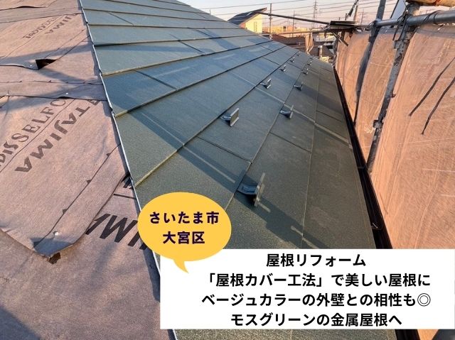 8月27日 川島町に突如降った激しい雹(ひょう) 川島町周辺にお住まいの皆さま、こんにちは!街の屋根やさん上尾店です(*'ω'*)発生日時と状況:8月27日、川島町に襲来した激しい雹と突風 2025年8月27日(水)の夜、埼玉県川島町を含む地 ...続きを読む2025/08/29 さいたま市大宮区 【屋根リフォーム】カバー工法で美しい屋根に~ベージュカラーの外壁との相性も◎モスグリーンの金属屋根へ