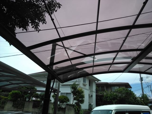 今回は大阪市生野区で「瓦屋根の面戸漆喰が劣化ではがれてきたので詰め直して欲しい」とのご依頼いただいた事例です。漆喰は瓦屋根の隙間を埋め、防水性を高める重要な素材ですが、一般的に瓦よりも早く劣化します。そのため、定期的に点検を行い、劣化していれば詰め直しなどのメンテナンスが必要です。瓦屋根の住宅にお住いの方は、 ...続きを読む2025/09/2 沼津市 古くなったアクリル屋根を安全・長持ちのポリカーボネートに交換!カーポートの補強工事を行いました