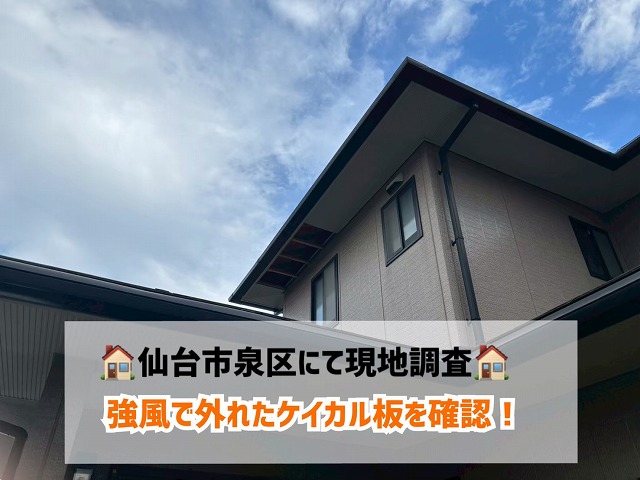 吉川市で太陽光パネル設置は今がチャンス! 🌞吉川市のみなさまこんにちは 街の屋根やさん越谷店です🌞 今回の現場ブログは・・「光熱費を節約したい」「停電時の備えに太陽光発電が気になる」そん ...続きを読む2025/08/25 仙台市泉区にて軒天破損箇所の現地調査!強風被害で外れたケイカル板を確認!