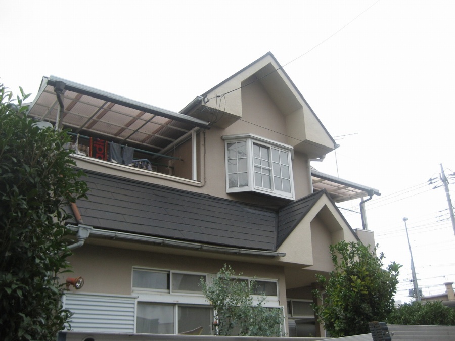 袖ケ浦市蔵波台にお住まいのお客様は台風の影響で雨樋が吹き飛んでしまいました。丁度台風の大風が当たった東面の場所の雨樋はほとんどが飛散してしまいました。築年数が20年以上経ってますので、雨樋も既存の物は生産されていなく修理することはできなくなってしまう為、工事をやるのであれば全てつながっている部分は交換工事となり値段 ...続きを読む2019/10/8 足立区本木北町にて台風15号による棟板金飛散に合わせ化粧スレートの屋根塗装もご提案