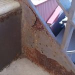 横浜市磯子区で塗装を検討中の建物です。外部に面した外階段の塗装についてで、鉄骨製の階段は大分サビが進行している状態でした。海に近い場合は潮風によって塩害(えんがい)が起きる事があります。簡単にいいますと、鉄は酸素と水によってサビていきますが、塩によってサビの進行が進んでしまいます。塩害の被害を受けやすい場所では、鉄骨の塗装をおこ ...続きを読む2018/09/7 君津市で染みのできた軒天をペンキ塗装にて解消