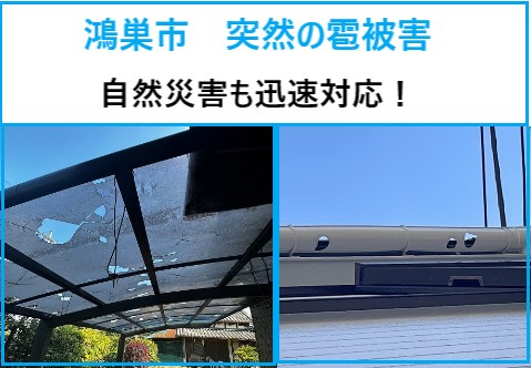 こんにちは!街の屋根やさん福岡西店です。 9月から10月にかけては、台風の接近が増える時期です。毎年、台風が過ぎ去った後には「屋根が破損してしまった」「雨漏りが始まった」といったご相談が急増します。今回は、台風による被害で倉庫の屋根が破損してしまったお客様の事例をご紹介します。 ...続きを読む2025/08/19 鴻巣市 突然の雹被害!この時期多発する自然災害も迅速対応|カーポートや雨樋の修理・火災保険申請もお任せください