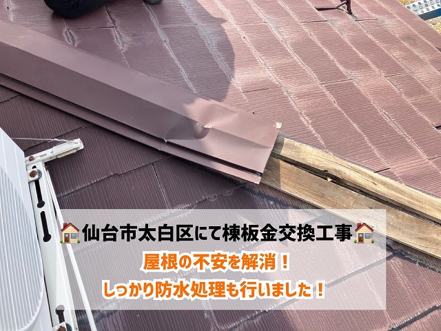 仙台市青葉区にお住まいの皆さんおばんです!街の屋根やさん仙台太白店 富永です😄✨近年の豪雨や長雨によって、雨樋のトラブル相談が増加しています!仙台市青葉区にお住まいのお客様からも「雨水のあふれや垂れが気になる」とのご相談をいただきました!現地を確認すると、軒樋の変形や竪樋の詰まり ...続きを読む2025/08/13 仙台市太白区にて風害で飛散した屋根 棟板金交換工事で屋根の不安を解消しました!