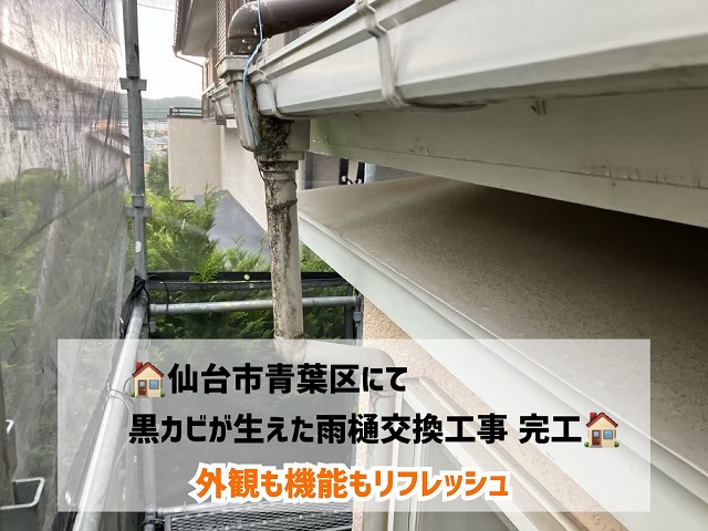 こんにちは!街の屋根やさん金沢南店です🏠白山市にて瓦屋根の葺き直し工事・雨どい部分交換を行いました! 瓦屋根の葺き直し工事 ...続きを読む2025/08/13 仙台市青葉区で黒カビが生えた雨樋の交換工事完工!外観も機能もリフレッシュ!