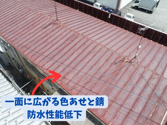 ■お問い合わせの経緯 瀬戸市西松山町にお住まいのお客様より、「屋根材が落ちてきた」と弊社の折込チラシをご覧になり、お電話をいただきました。屋根の部材が落下するのは安全面でも非常に危険で、放置すると雨漏りや下地腐食にもつながります。早急な確認が必要と判断し、即日ドローンによ ...続きを読む2025/08/12 多治見市虎渓山町にて工場屋根の色あせ・サビ・雨樋詰まりによる雨漏り現地調査!