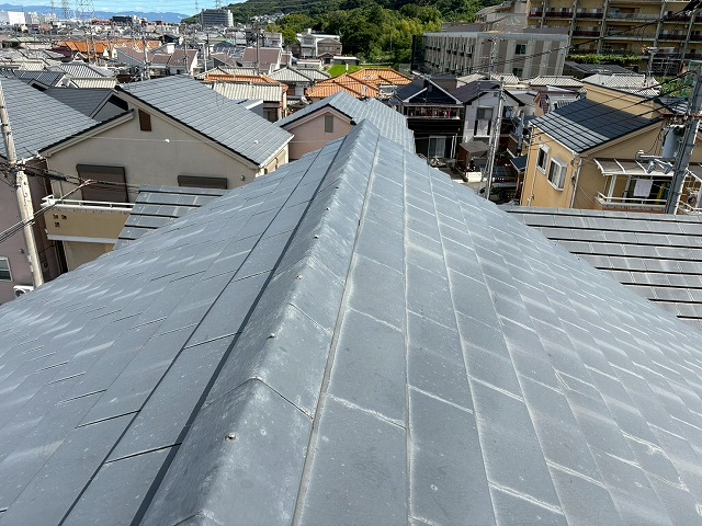 こんにちは!街の屋根やさん富山店です🏠砺波市にて、「棟瓦の積み直し工事」「一部瓦屋根の葺き直し工事」「雨どい交換工事」を行っています。今回はコチラの砺波市の工事も終盤です🔨「瓦屋根の補修工事」・「雨どいの交換工事」の様子をお伝えします! 瓦 ...続きを読む2025/08/1 神戸市内【屋根点検のご依頼】スレート屋根に浮いた釘とひび割れ、劣化が進む前に屋根カバー工法をご提案