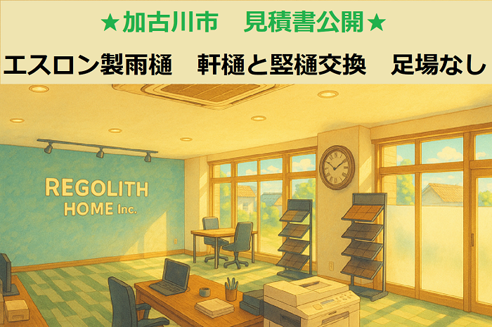 みなさまこんにちは。街の屋根やさん広島店です!いつもブログをご覧いただきありがとうございます(^^)/広島市で新築工事中の戸建て住宅で、屋根裏の断熱工事を行いました。今回は、屋根裏に施工した発泡ウレタン吹付の様子をご紹介します😊街の屋根やさん広島店では、リフォーム工事はもちろん ...続きを読む2025/08/1 加古川市 見積書公開!エスロン製雨樋 軒樋7m竪樋3m 交換 足場なし