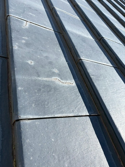 東大阪市にて戸建て住宅に関する屋根調査の事例をご紹介します!お客様から「1階と2階も雨漏りしているので見てほしい」という依頼がありました。調査の結果、大きな破損は見られませんでしたが、雨漏りの原因を特定するのは難しい状況でした。しかし、屋根の谷部に不具合がある可能性が高いと考え、その旨をお伝えしました。屋根は ...続きを読む2025/08/1 大阪市平野区でひび割れが生じた屋根材の調査、雨漏り原因に発展する恐れがあるため葺き替え工事をご案内