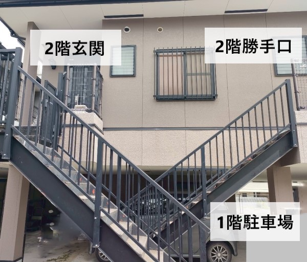 2025/08/1 【上益城郡益城町】外階段に屋根を後付けしたいとご相談|階段鉄部の錆や駐車場天井の劣化も確認!