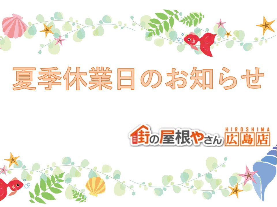 上尾市のみなさま・・雨樋掃除を後回しにしていませんか? 🎵上尾市のみなさまこんにちは 街の屋根やさん上尾店です🎵 今回の現場ブログは・・多くの方が「後回し」にしがちな雨樋掃除についてお話 ...続きを読む2025/08/1 【広島屋根工事】2025年夏季休業日のお知らせ|街の屋根やさん広島店