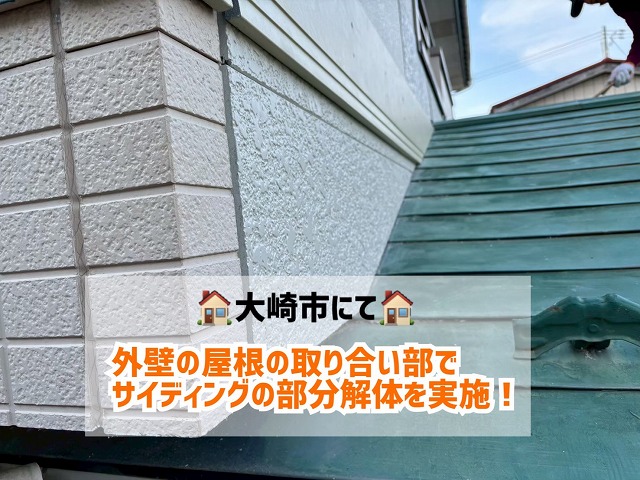 三木市の皆さんこんにちは!街の屋根やさん加古川店です。 今回は三木市で進めているモルタル補修工事の中から、モルタルを剥がした後の重要な工程をご紹介します。 外壁塗装を長持ちさせる秘訣は、この見えなくなる下地処理にこそあります。 写真で見る工事の ...続きを読む2025/07/31 大崎市にて外壁と屋根の取り合い部でサイディングの部分解体を実施しました!