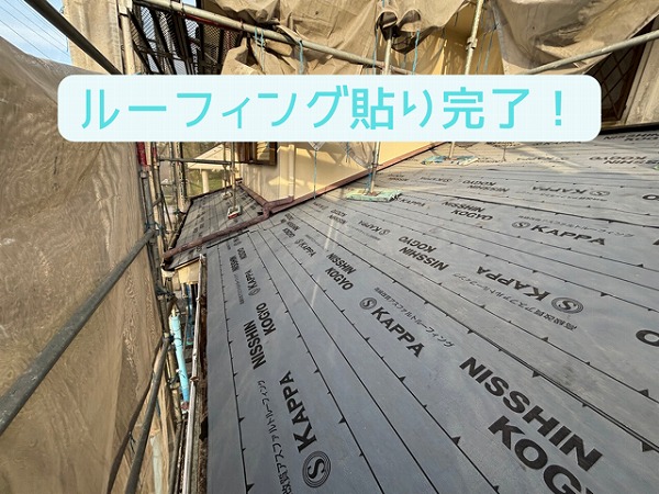 防水ルーフィングを丁寧に施工 こんにちは!今回は、多治見市小名田町にて行った下屋(げや)部分の屋根工事の様子をご紹介します。雨や風から建物をしっかり守るためには、屋根の下地づくりがとても大切です。本施工では、防水ルーフィングの敷き込みから瓦を載せるための桟木(さんぎ)の取 ...続きを読む2025/07/26 【京都市伏見区】雨漏りしていた瓦屋根。屋根リフォームで台風も怖くない!