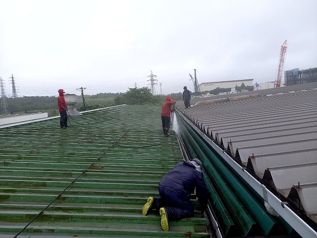 2025/07/23  かすみがうら市にて排水機能の低下が生じていた工場建物の雨樋清掃ビフォーアフター